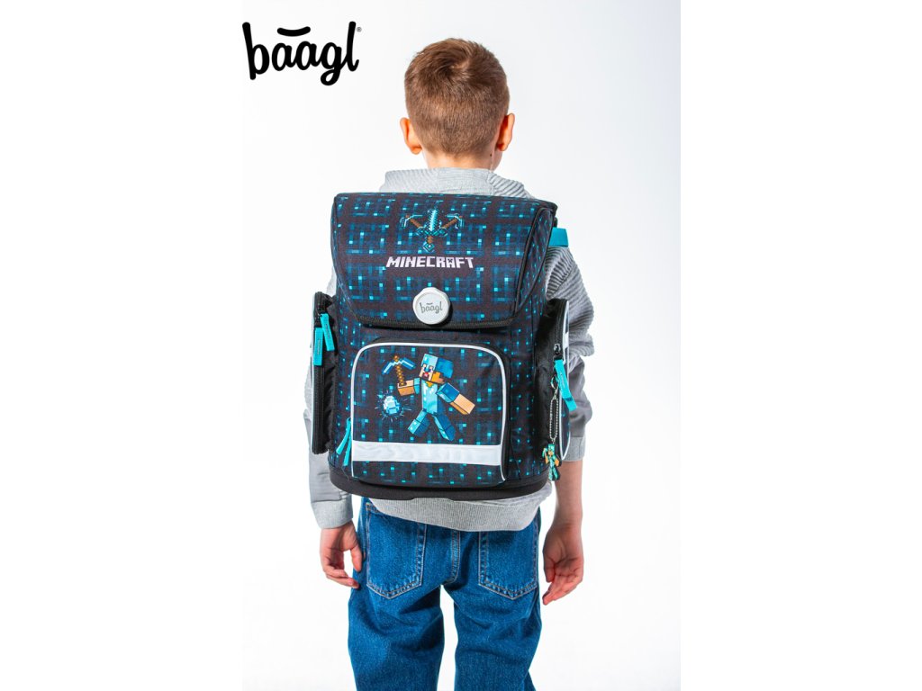 BAAGL 3 SET Ergo Minecraft Blue Axe: aktovka, peračník, sáčok