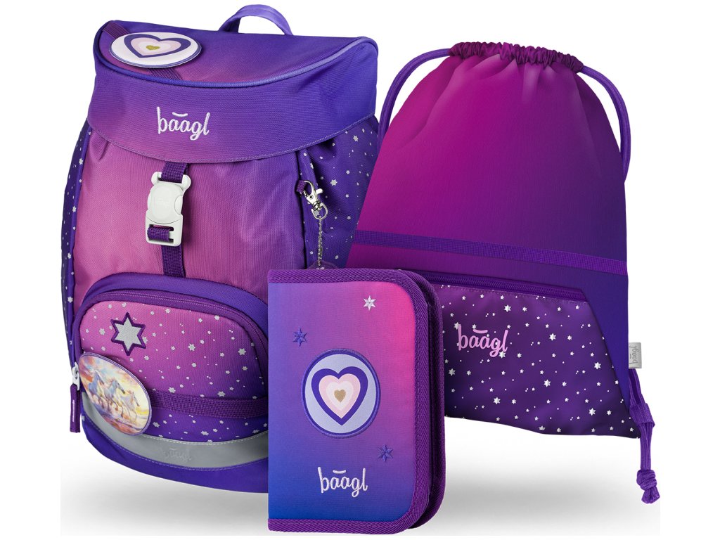 BAAGL SET 3 AIRY Kone srdca: batoh, peračník, sáčok