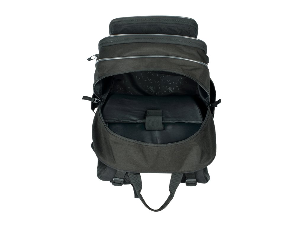 • Tri samostatne uzatvárateľné komory s vnútorným organizérom a vreckom na 15-palcový notebook či tablet. Tento vnútorný organizér umožňuje rovnomerné rozloženie hmotnosti.