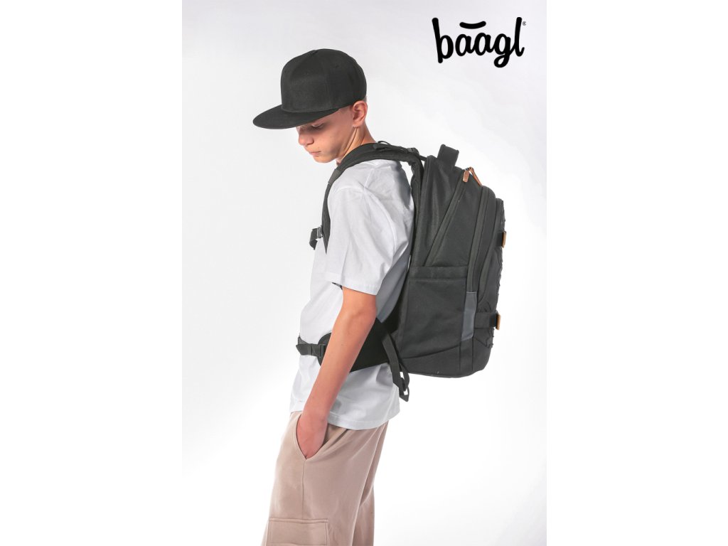• Postranné vrecká, ideálne napríklad na tritánové fľaše BAAGL, sú vyrobené z pevného materiálu zladeného s dizajnom batohu.