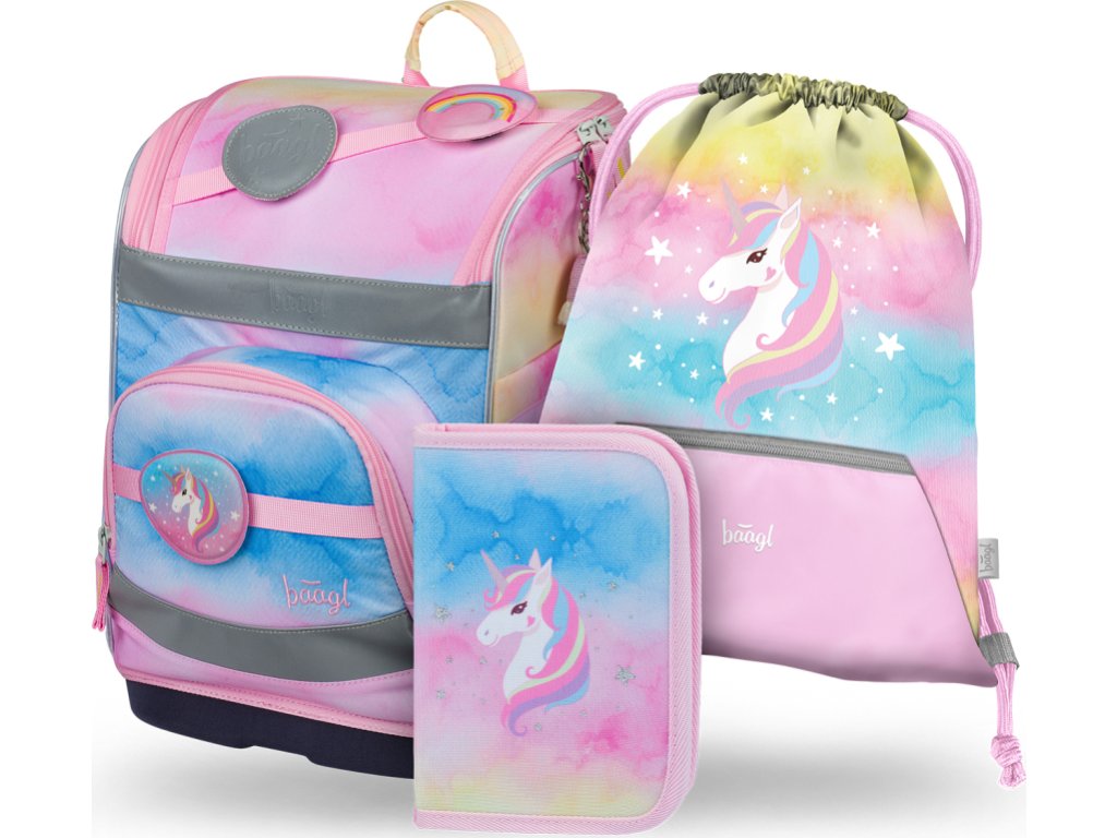 BAAGL SET 3 Zippy plus Rainbow Unicorn: aktovka, peračník, sáčok
