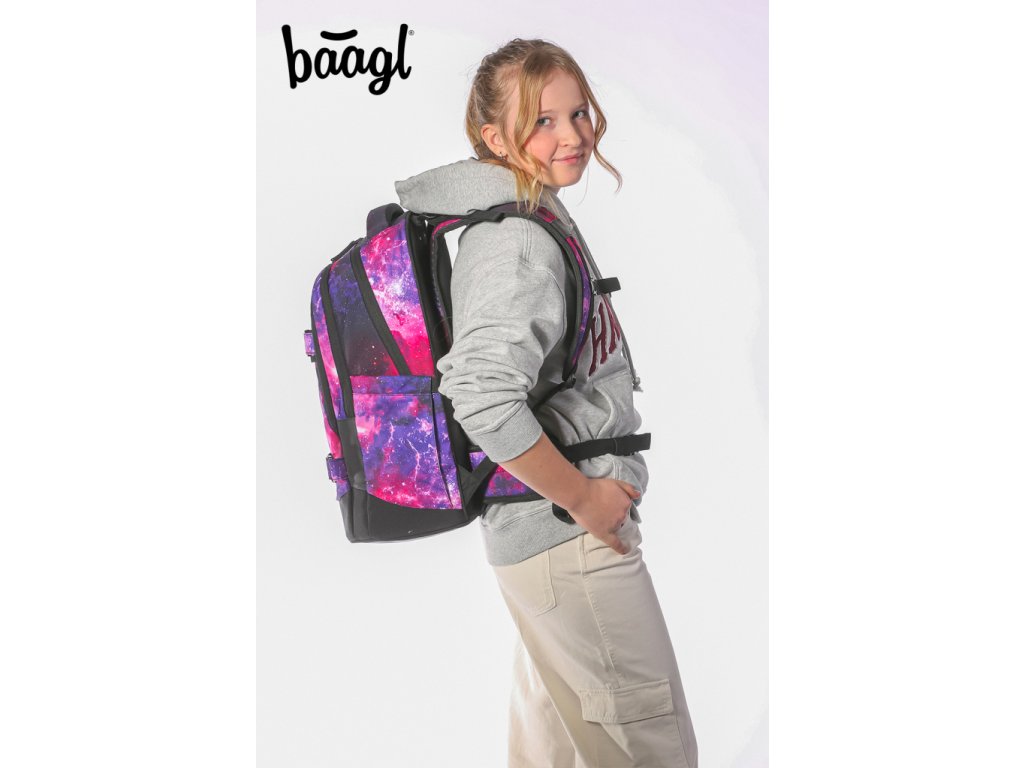 • Postranné vrecká, ideálne napríklad na tritánové fľaše BAAGL, sú vyrobené z pevného materiálu zladeného s dizajnom batohu.