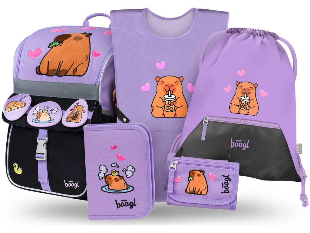 BAAGL SET 5 Zippy Kapybara: aktovka, peračník, sáčok, zástera, peňaženka