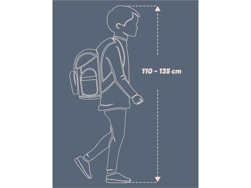 • Posuvný chrbtový systém umožňuje nastavenie aktovky na tri rôzne veľkosti, vďaka čomu taška rastie spolu s dieťaťom.