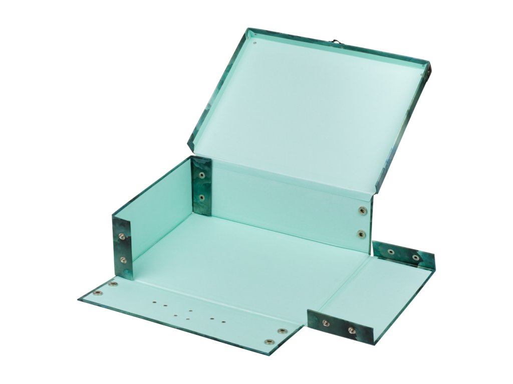 • Vďaka dômyselnému systému patentiek je možné kufrík s okovanými rohmi ľahko zložiť aj rozložiť v priebehu niekoľkých sekúnd.