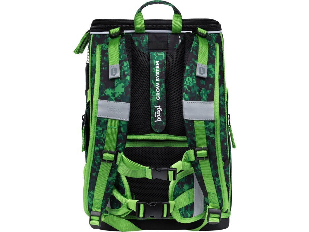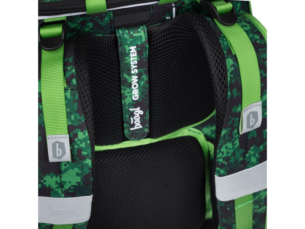 • Posuvný chrbtový systém umožňuje nastavenie aktovky na tri rôzne veľkosti, vďaka čomu taška rastie spolu s dieťaťom.