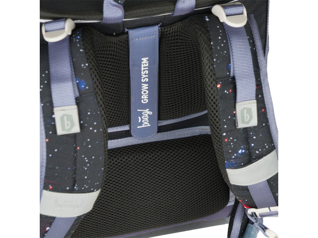 • Posuvný chrbtový systém umožňuje nastavenie aktovky na tri rôzne veľkosti, vďaka čomu taška rastie spolu s dieťaťom.