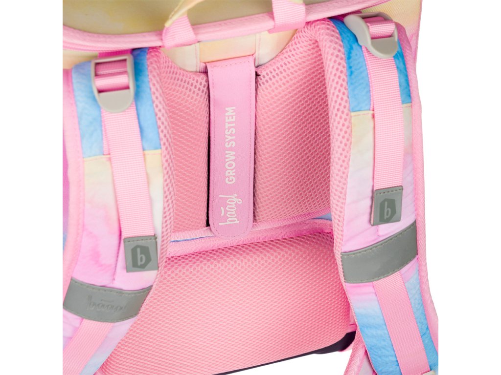 • Posuvný chrbtový systém umožňuje nastavenie aktovky na tri rôzne veľkosti, vďaka čomu taška rastie spolu s dieťaťom.