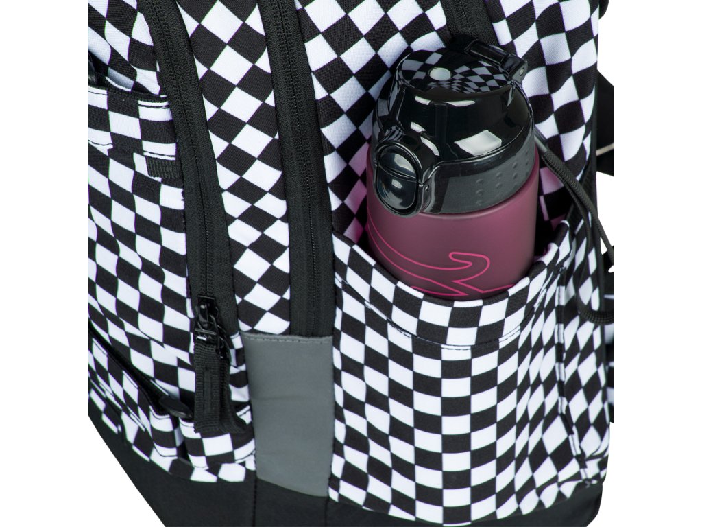 • Postranné vrecká, ideálne napríklad na tritánové fľaše BAAGL, sú vyrobené z pevného materiálu zladeného s dizajnom batohu.