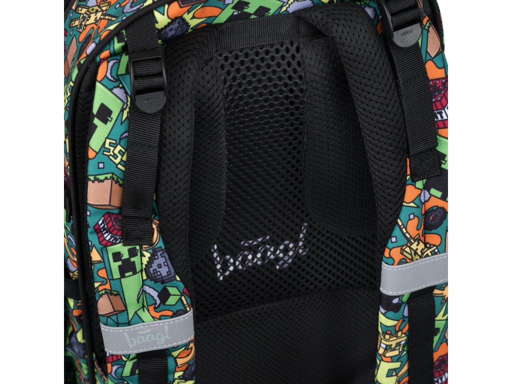 • Postranné vrecká, ideálne napríklad na tritánové fľaše BAAGL, sú vyrobené z pevného materiálu zladeného s dizajnom batohu.