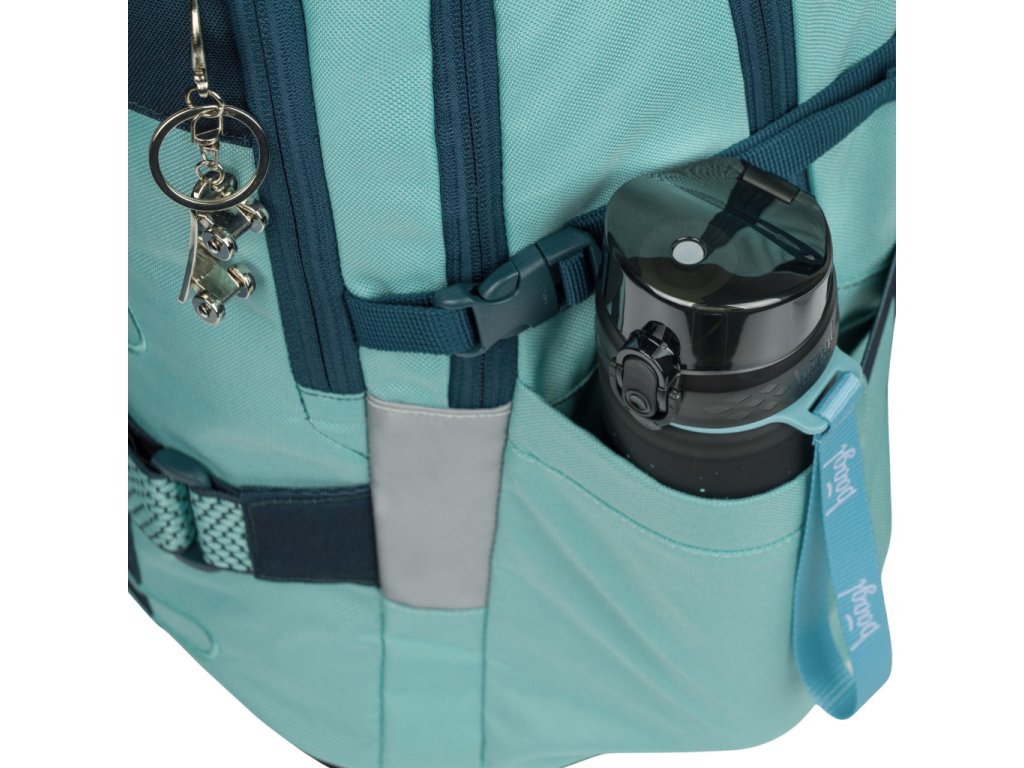 • Postranné vrecká, ideálne napríklad na tritánové fľaše BAAGL, sú vyrobené z pevného materiálu zladeného s dizajnom batohu.