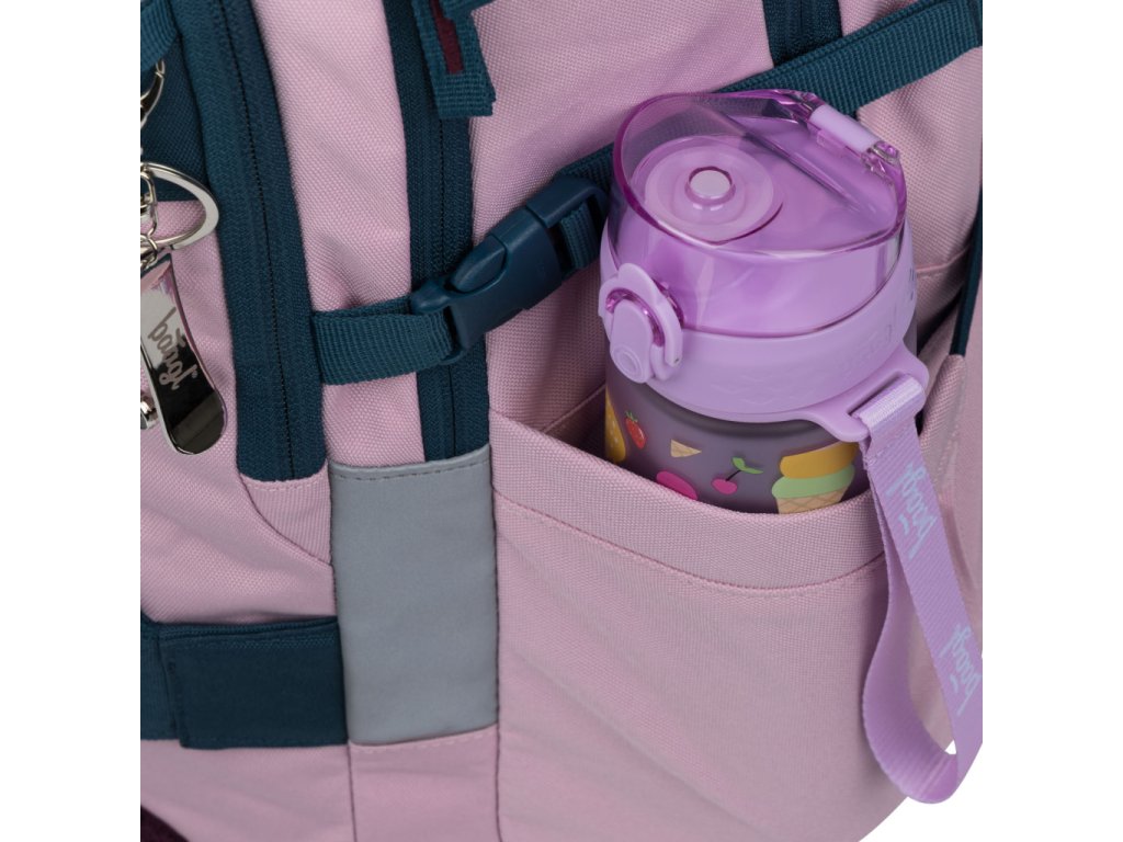 • Postranné vrecká, ideálne napríklad na tritánové fľaše BAAGL, sú vyrobené z pevného materiálu zladeného s dizajnom batohu.
