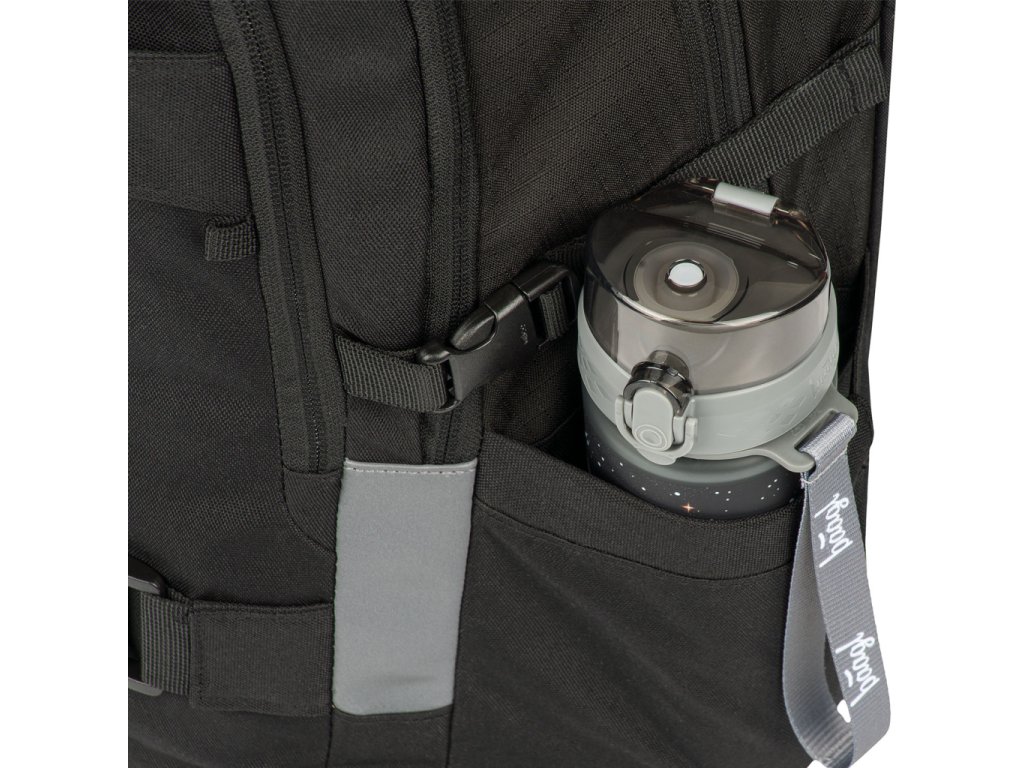 • Postranné vrecká, ideálne napríklad na tritánové fľaše BAAGL, sú vyrobené z pevného materiálu zladeného s dizajnom batohu.