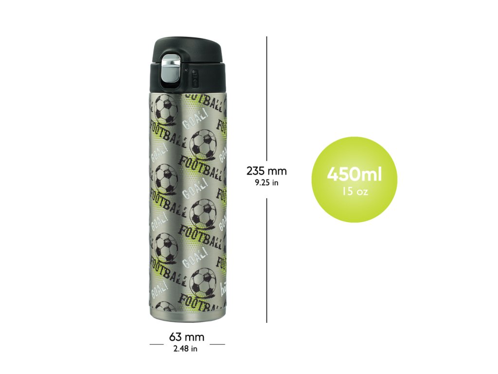 • Fľašu s objemom 450 ml ponúkame v niekoľkých hravých designoch, ktoré je možné zladiť s ďalšou školskou výbavou.
