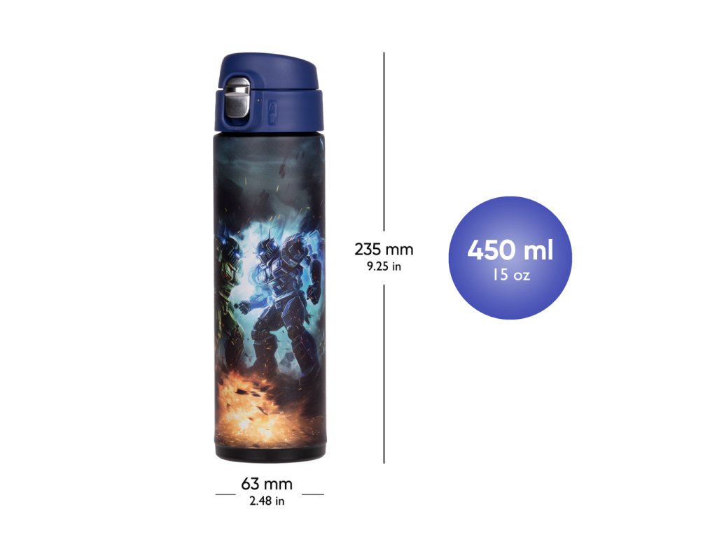• Fľašu s objemom 450 ml ponúkame v niekoľkých hravých designoch, ktoré je možné zladiť s ďalšou školskou výbavou.