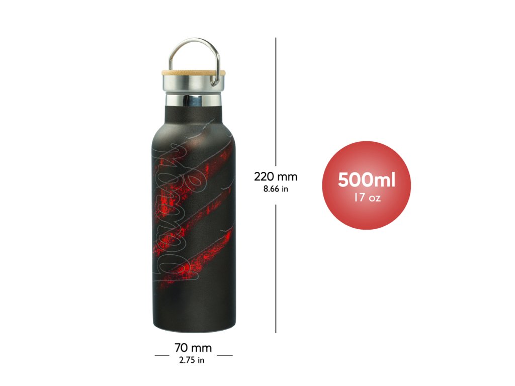 • Štýlová fľaša s kovovým viečkom a objemom 500 ml nielen skvele vyzerá, ale je aj veľmi praktická. Horúci nápoj udrží teplý až 12 hodín, zatiaľ čo studené nápoje zostanú osviežujúce až 24 hodín.