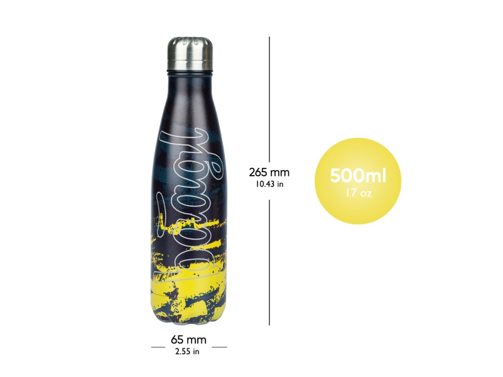 • Štýlová fľaša s kovovým viečkom a objemom 500 ml nielen skvele vyzerá, ale je aj veľmi praktická. Horúci nápoj udrží teplý až 12 hodín, zatiaľ čo studené nápoje zostanú osviežujúce až 24 hodín.