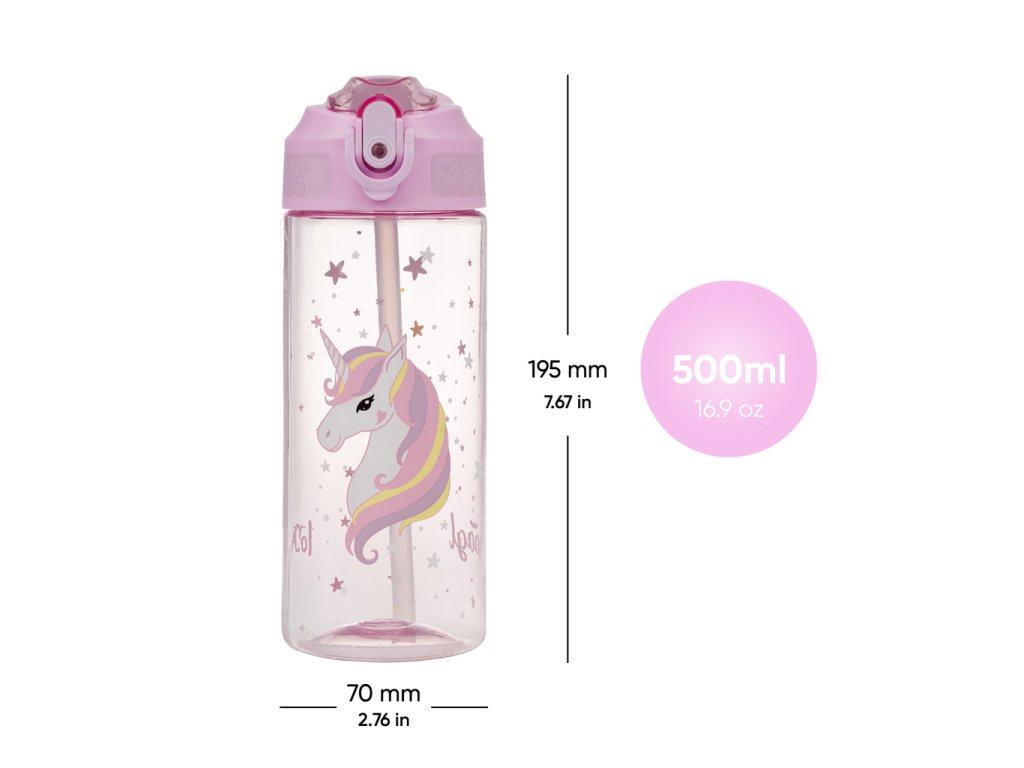 BAAGL Tritánová fľaša na pitie so slamkou Rainbow Unicorn 500 ml