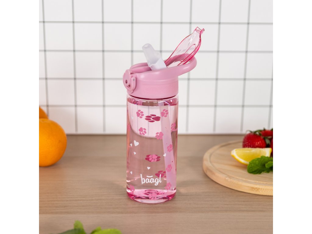 BAAGL Tritánová fľaša na pitie so slamkou Tlapky 500 ml