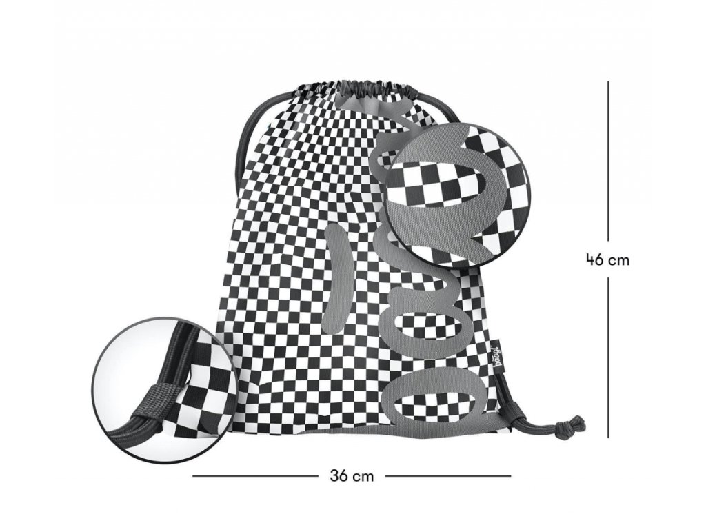 • Vrecko je vyrobené z pevného umývateľného materiálu. • Zdrhovanie pomocou pevných šnúrok, ktoré zároveň umožňujú nosenie na chrbte.