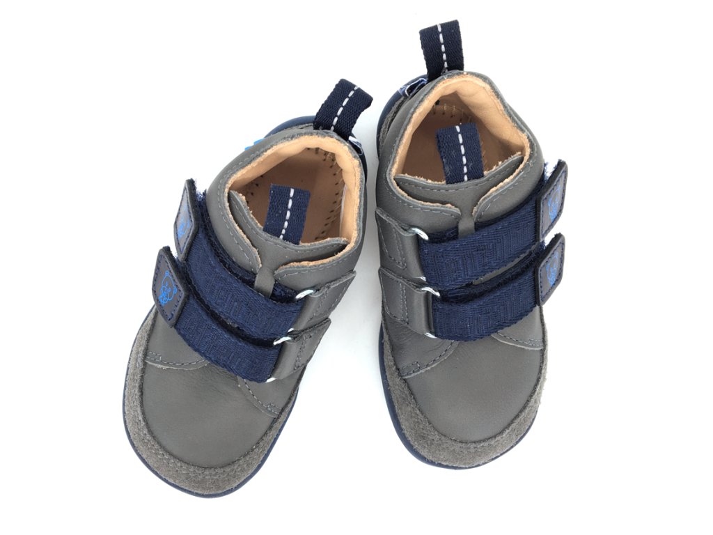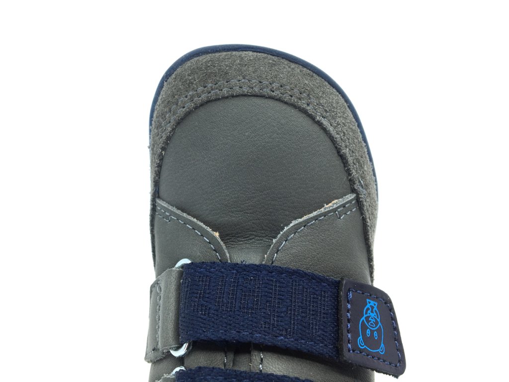 Ľahké kožené barefoot celoročky Affenzahn v decentnej šedo-modrej kombinácii. Jednoduchý dizajn a perfektné funkcie. Vhodné na jar, leto aj jeseň. Krásne mäkký kožený lem okolo členku. Majú veľa vychytaných detských detailov - ľavá a pravá topánka majú v zadnej časti pútko skladajúce dohromady obrázok medveďa, keď sú vedľa seba, reflexné prvky, detské obrázky...