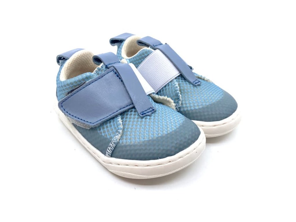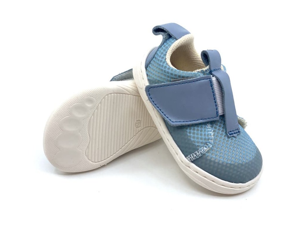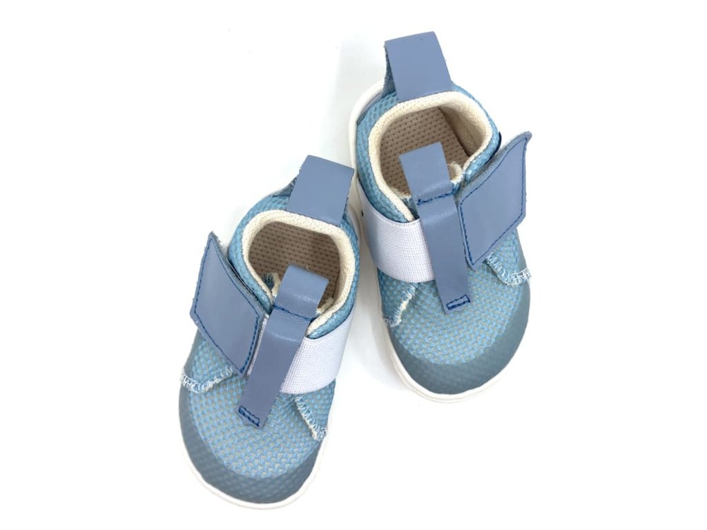 Textilné barefoot capáčky / prvé tenisky Pegres SBF 63 v modrej farbe sú novinkou na jar / leto 2025. Zvršok tvorí perfektne priedušná sieťovina , podšívka aj stielka sú taktiež textilné .