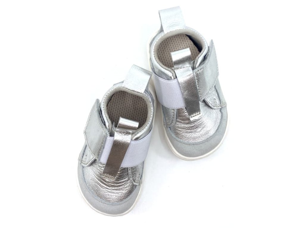 Celokožené dievčenské barefoot capáčky / prvé tenisky Pegres SBF 64 v striebornej farbe sú ideálne na prvé krôčiky. Zvršok aj podšívku tvorí prémiová kozia koža , stielka je vyberateľná s textilným nášľapom.