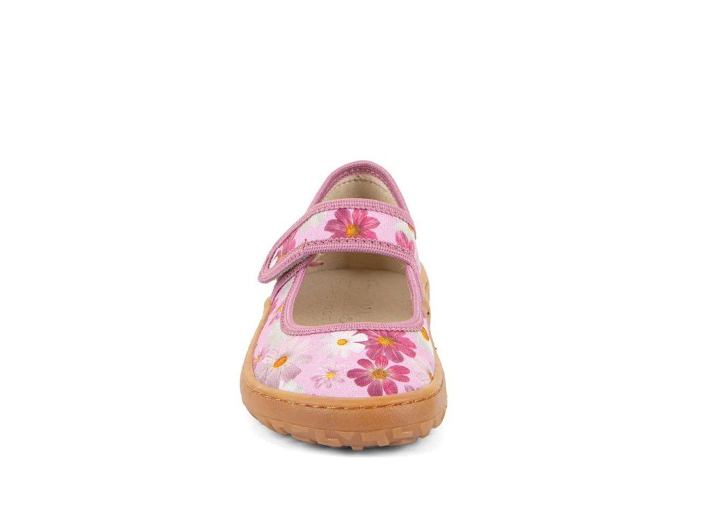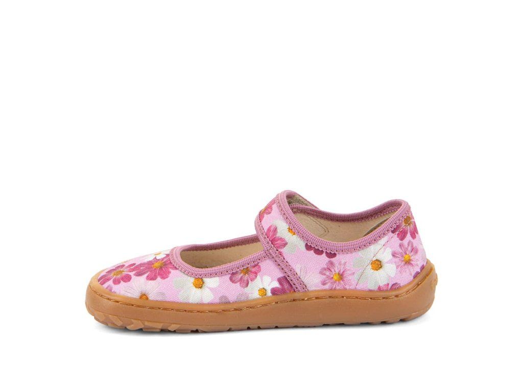 Barefoot Froddo - Canvas Balletty - Flowers - G1700437-2 sú barefoot papuče vhodné na doma alebo do školy či škôlky, ale použiteľné aj na behanie vonku pri teplom počasí. Sadnú deťom s úzkou nohou a normálnym a nižším priehlavkom. Podrážka je ohybná všetkými smermi, gumová.