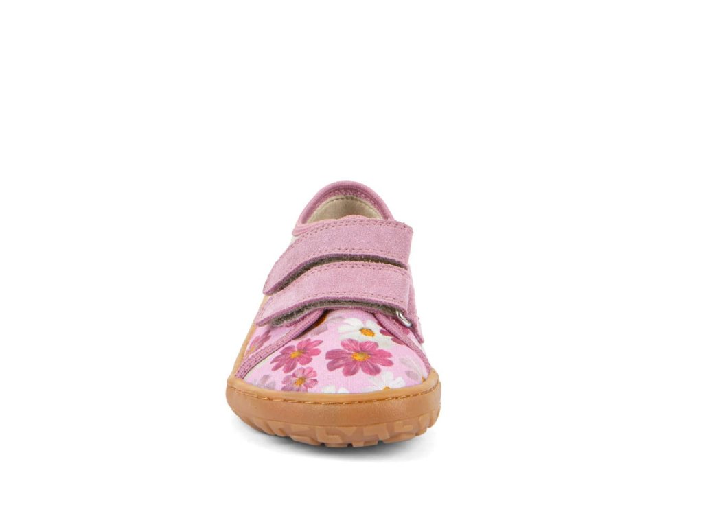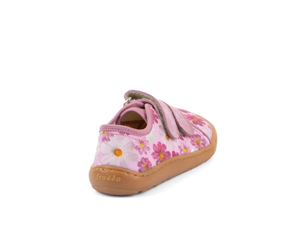 Barefoot textilné tenisky Barefoot Froddo Flowers G1700440-9 s obľúbeným motívom kvietkov v ružovej farbe . Textilná vrchná časť s dvoma suchými zipsami z kože a podrážka z gumy. Upravený model s novou ekologickejšou vnútornou stielkou z mikrovlákna. Dajú sa použiť ako tenisky pre teplejšie dni, papuče alebo topánky do telocviku.