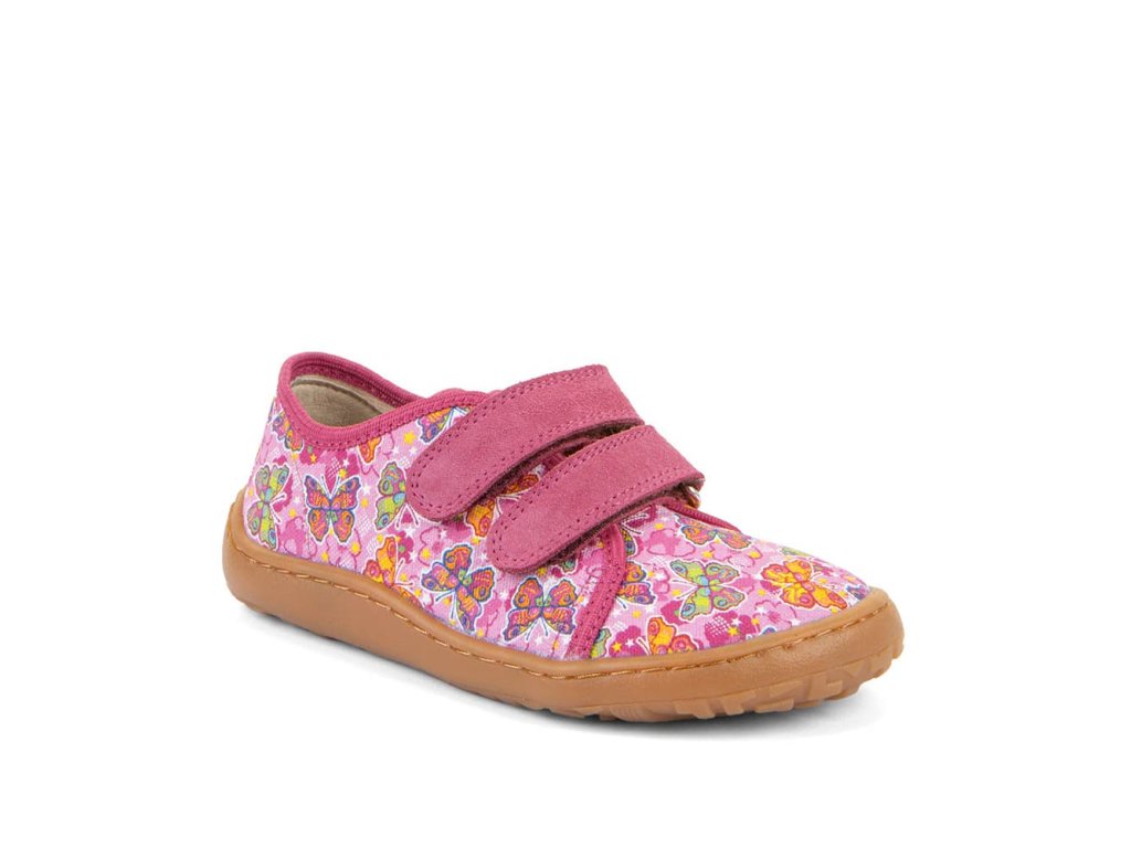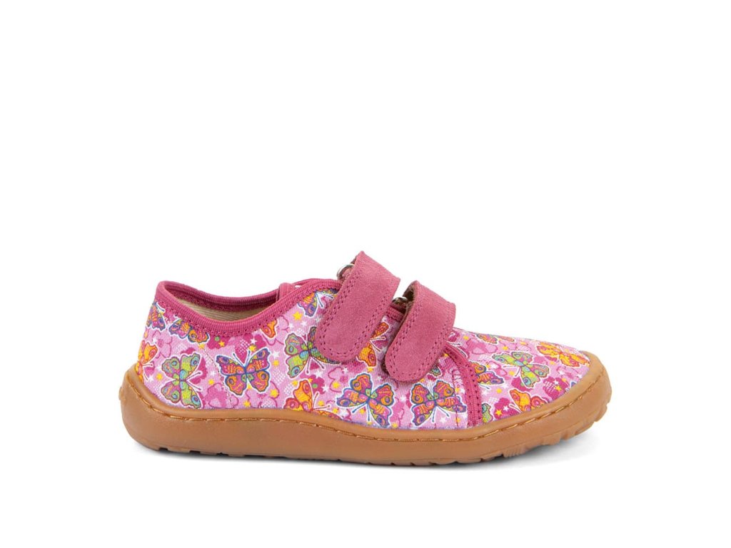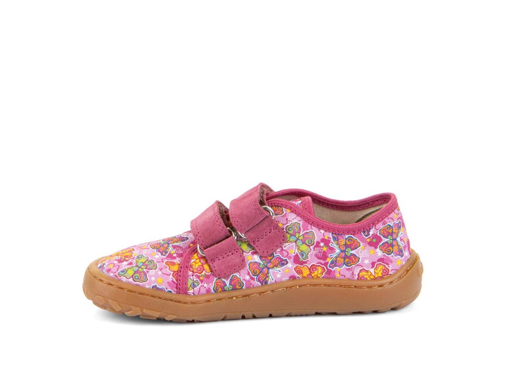 Barefoot textilné tenisky Barefoot Froddo Fuxia / Pink G1700440-11 s obľúbeným motívom motýlikov . Textilná vrchná časť s dvoma suchými zipsami z kože a podrážka z gumy. Upravený model s novou ekologickejšou vnútornou stielkou z mikrovlákna. Dajú sa použiť ako tenisky pre teplejšie dni, papuče alebo topánky do telocviku.
