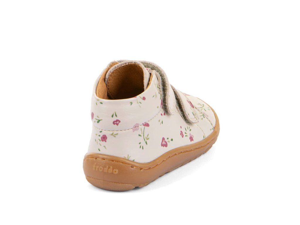 Detské barefoot celoročné topánky Barefoot Froddo G2130369-14 Flowers v pleťovo ružovej farbe sú členkové kožené topánky . Vhodné na jar, jeseň, ale aj na chladné leto. Kombinujú štýlový dizajn a ľahké obúvanie aj pre deti. Vrchná časť topánky je kompletne kožená, a rovnako tak aj podšívka je z jemnej kože. Praktické zapínanie na suchý zips umožňuje ľahké obúvanie aj deťom. Podrážka je z gumy.