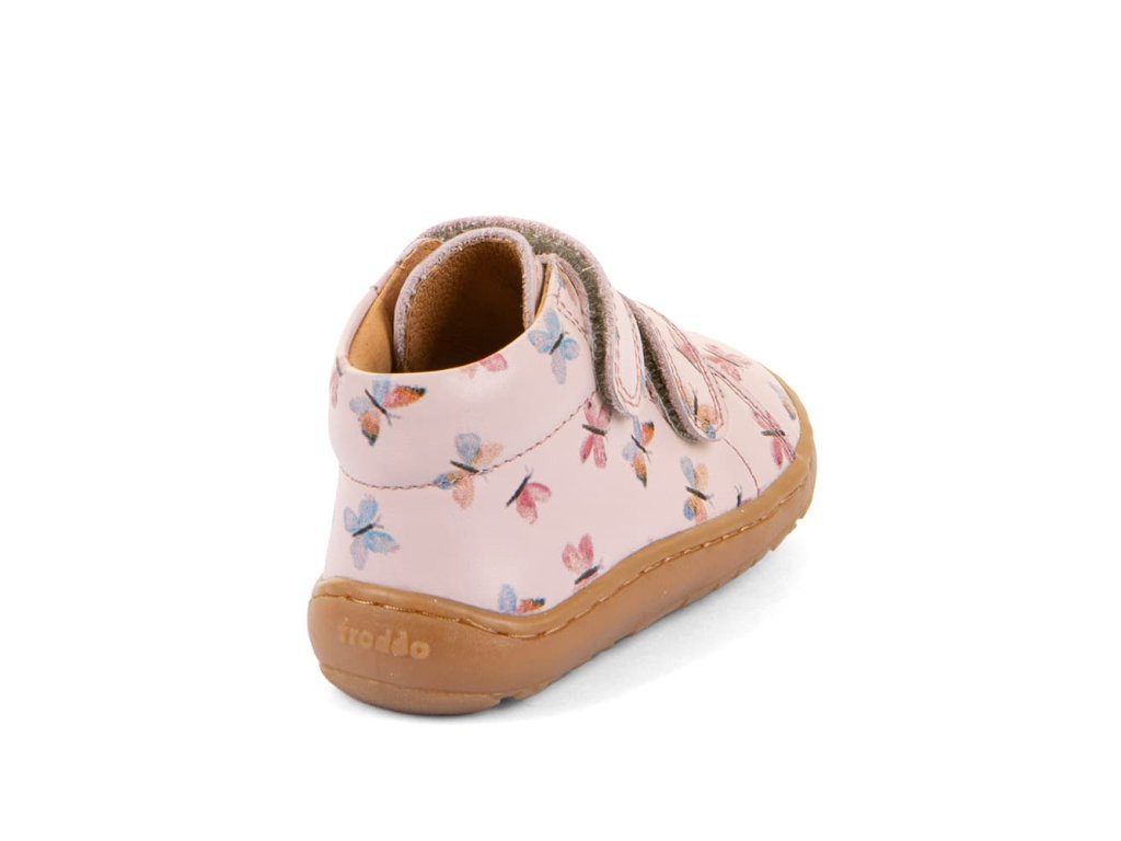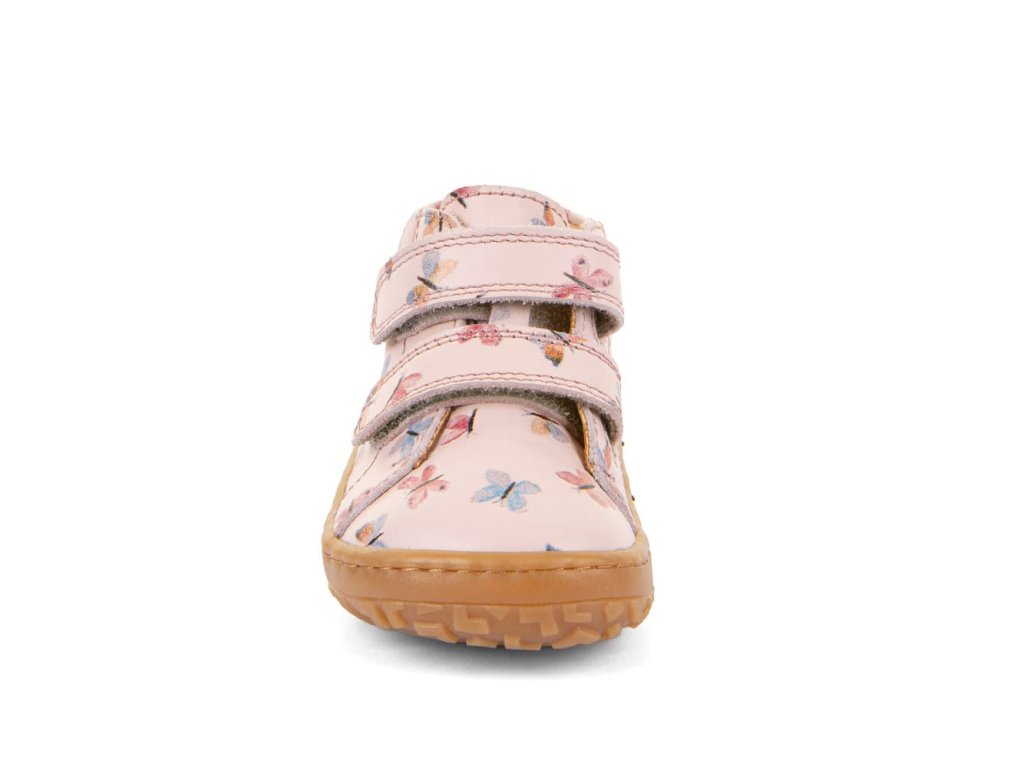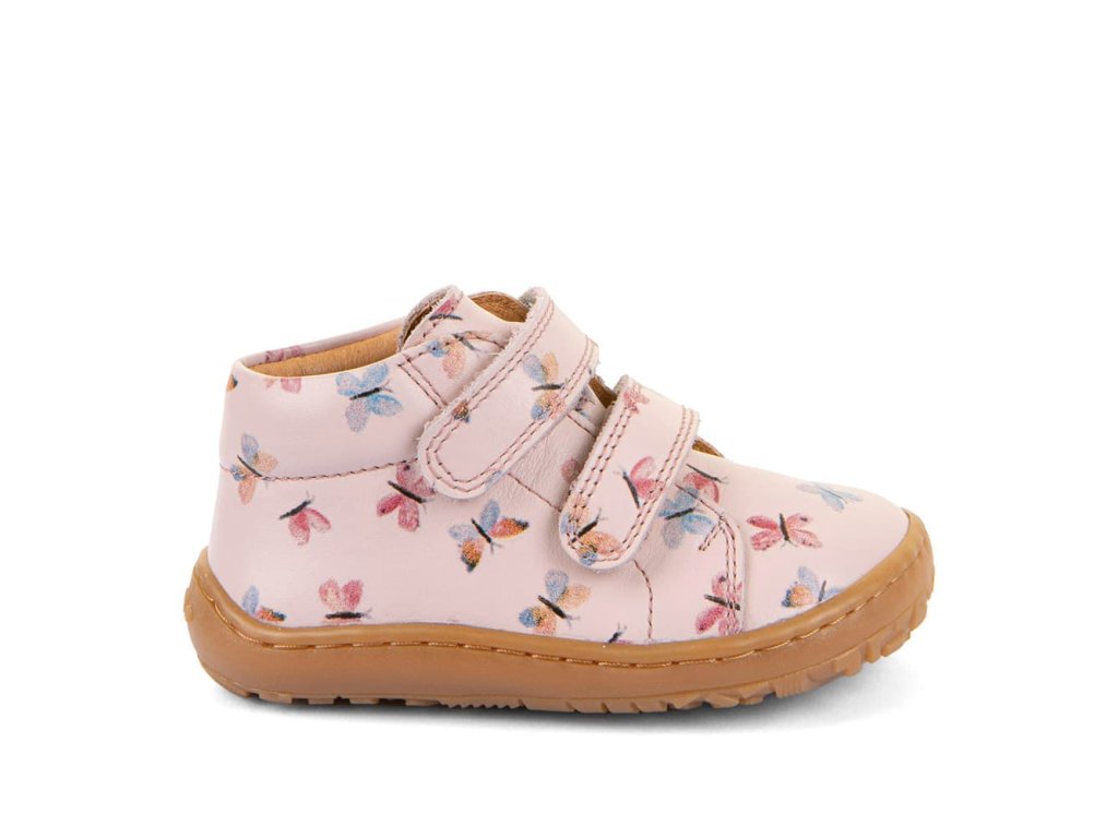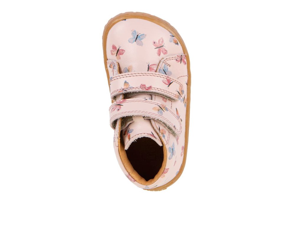 Detské barefoot celoročné topánky Barefoot Froddo G2130369-15 Pink + v ružovej farbe s kvietkami sú členkové kožené topánky . Vhodné na jar, jeseň, ale aj na chladné leto. Kombinujú štýlový dizajn a ľahké obúvanie aj pre deti. Vrchná časť topánky je kompletne kožená, a rovnako tak aj podšívka je z jemnej kože. Praktické zapínanie na suchý zips umožňuje ľahké obúvanie aj deťom. Podrážka je z gumy.
