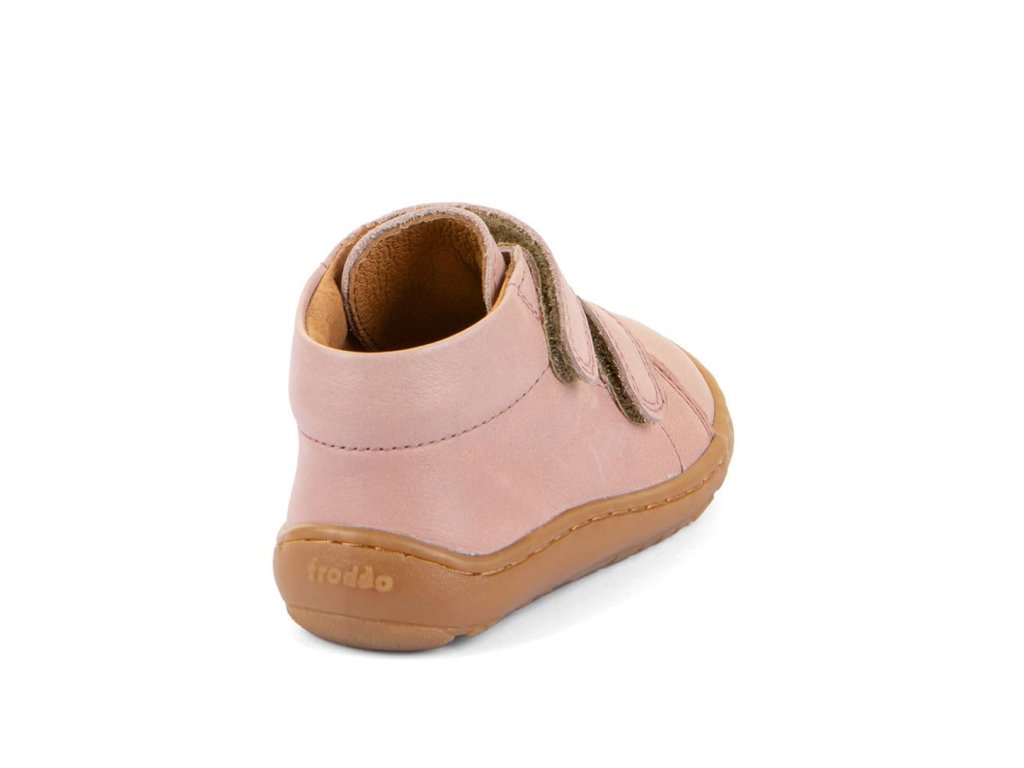 Detské barefoot celoročné topánky Barefoot Froddo G2130369-2 Pink v ružovej farbe sú členkové kožené topánky . Vhodné na jar, jeseň, ale aj na chladné leto. Kombinujú štýlový dizajn a ľahké obúvanie aj pre deti. Vrchná časť topánky je kompletne kožená, a rovnako tak aj podšívka je z jemnej kože. Praktické zapínanie na suchý zips umožňuje ľahké obúvanie aj deťom. Podrážka je z gumy.