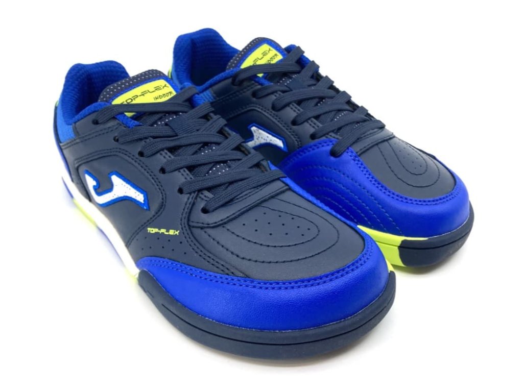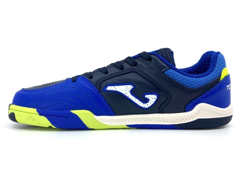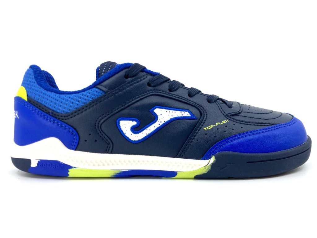 Chlapčenské barefoot halovky Joma TOP FLEX JR 2603 v modro-čiernej kombinácii s fosforovými detailmi . Svojím tvarom vhodné na futbal, ale aj všetky ďalšie halové športy, alebo do školy na telocvik. Vďaka protišmykovej podrážke, ktorá nerobí šmuhy sa budú všade páčiť. Stielka je penová s textilným nášľapom, je vyberateľná pre ľahkú kontrolu veľkosti. Veľmi flexibilná podrážka, dostatočné miesto pre prsty a zero drop robí z týchto sáloviek ideálne barefoot topánky pre zdravý pohyb.