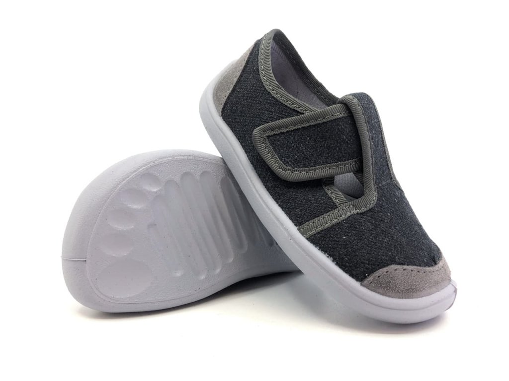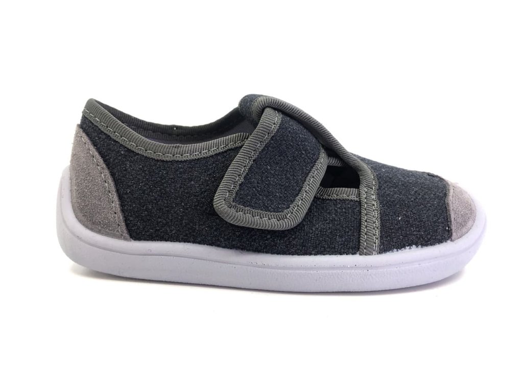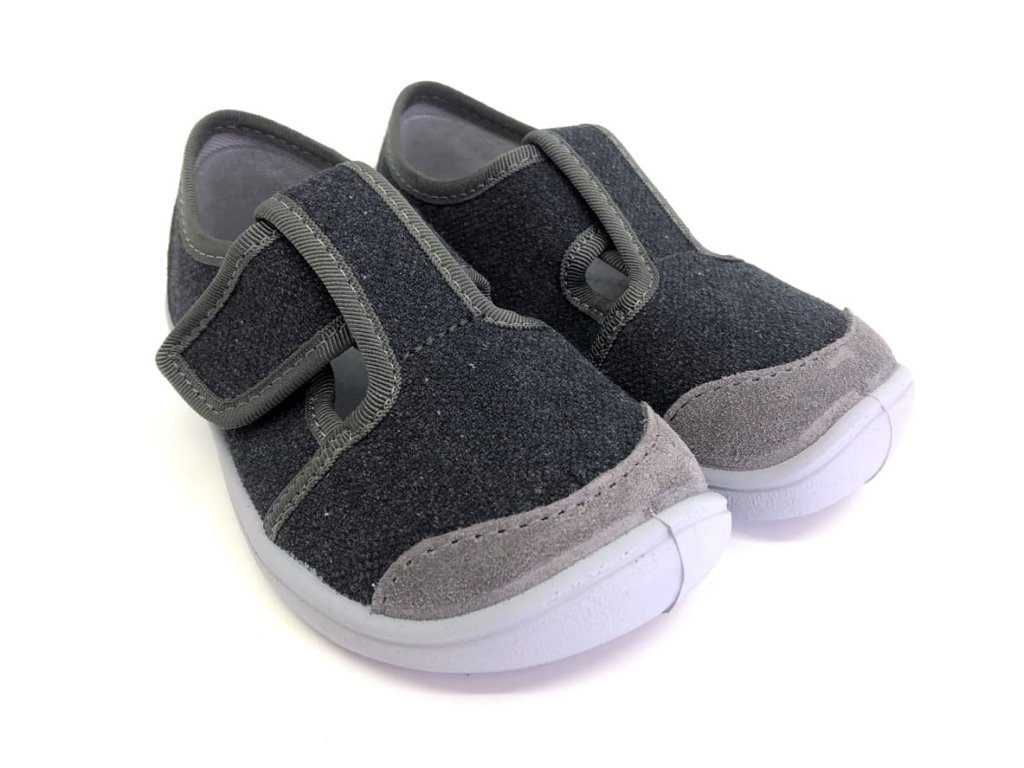 Nové detské barefoot papuče Anatomic BF05 v praktickej šedej farbe. Vyberateľná kožená antibakteriálna stielka.