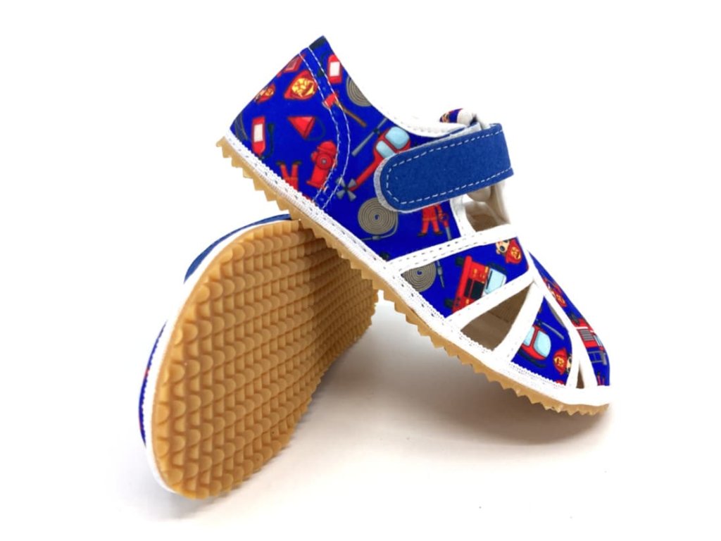 Moderný motív s hasičmi zaručene vašich malých hrdinov poteší. Hladká textília sa ľahko udržuje a je priedušná. Barefoot konštrukcia podporuje prirodzený pohyb detských nôh a správny vývoj chodidiel. Ideálne na každodenné nosenie doma alebo v škôlke.