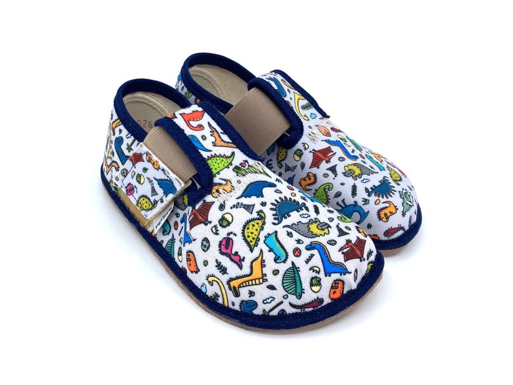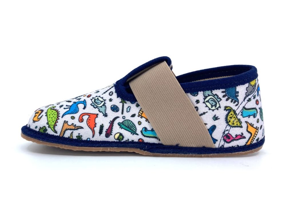 Tvar špičky je 100% barefoot s dostatkom miesta na prsty vhodný aj na dominantné palce. Prsty majú dostatok miesta nielen do šírky, ale vďaka tvaru aj do výšky - papučky sa smerom do špičky neznižujú. Výborná ohybnosť, pekný jednoduchý dizajn, krásne spracovanie, zvršok je z priedušnej textílie.