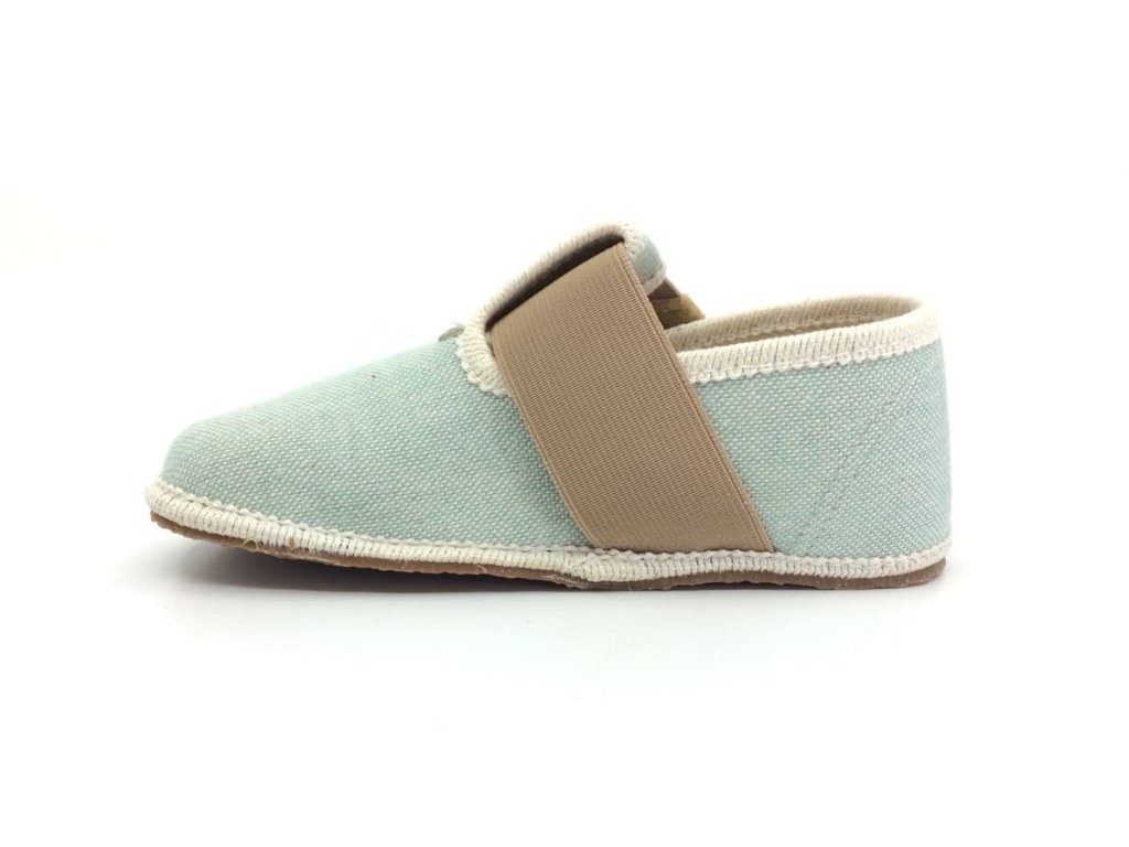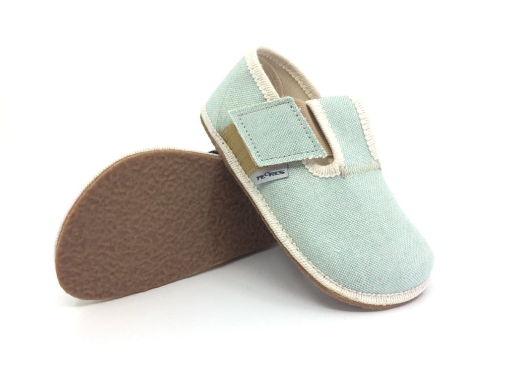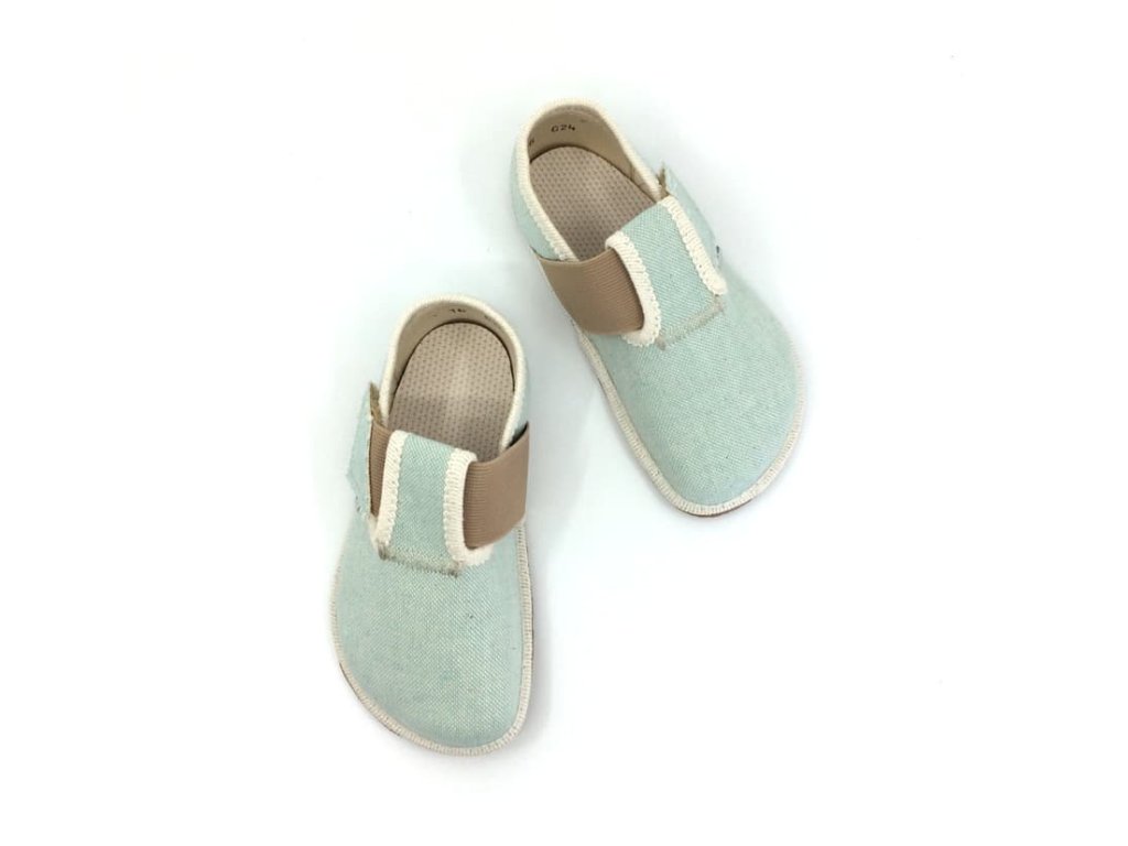 Nové barefoot papuče Pegres BF01U mint. Novinka 2022 - papuče sú vyrobené z recyklovaného materiálu (polyester) spolu s podielom bavlny. Tvar špičky je 100% barefoot, kde sa kladie dôraz na priestor pre prsty. Sú vhodné aj pre dominantné palce s dostatkom miesta do šírky aj výšky zároveň. Pružný pásik so suchým zipsom umožní reguláciu v oblasti priehlavku, ktorý nijako netlačí a neťahá. Papuče sú celkovo veľmi ľahké a ohybné všetkými smermi.