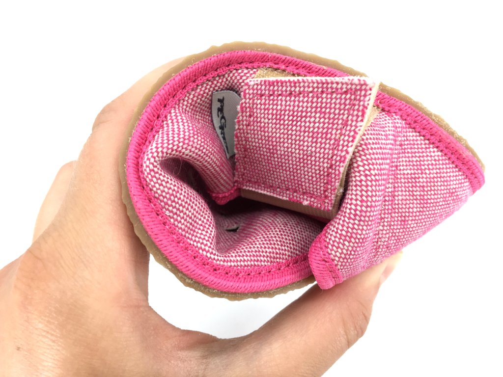 Pegres BF03 v ružovej farbe - podarená novinka z mája 2020 - barefoot papučky šité na nových kopytoch. Nový tvar špičky je 100% barefoot s dostatkom miesta pre prsty - oproti radu "Bosé Pegresky" sú vhodné aj na dominantné palce. Prsty majú dostatok miesta nielen do šírky, ale vďaka novému tvaru aj do výšky - papučky sa smerom do špičky neznižujú. Výborná ohybnosť, pekný jednoduchý dizajn, krásne spracovanie, zvršok je z priedušnej textílie.