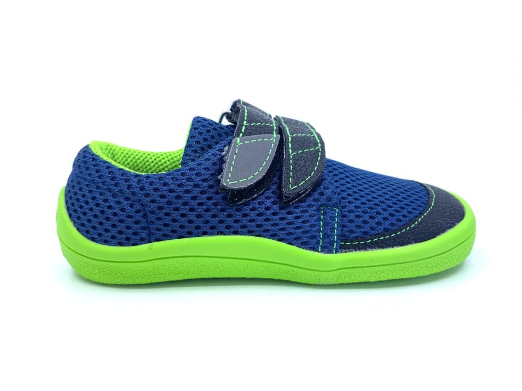 Modré barefoot tenisky Beda Blue Lime BF 0001/ST/W/O s limetkovo zelenou podrážkou a praktickou pogumovanou špičkou. Textilné sieťované spracovanie pre maximálnu priedušnosť. Beda barefootky sú veľmi ľahučké, ohybné vo všetkých smeroch s veľmi priestrannou prednou časťou. Reflexný prvok na suchom zipse pre lepšiu viditeľnosť, opätok mierne spevnený iba v časti, kde je vytiahnutá podrážka do výšky.