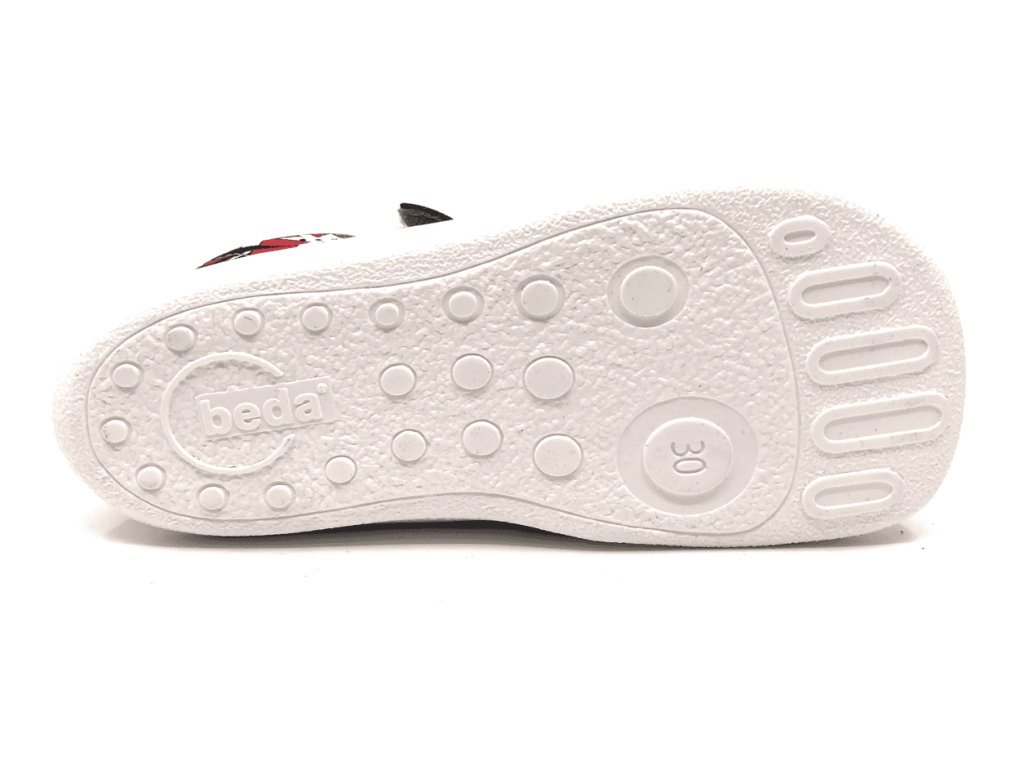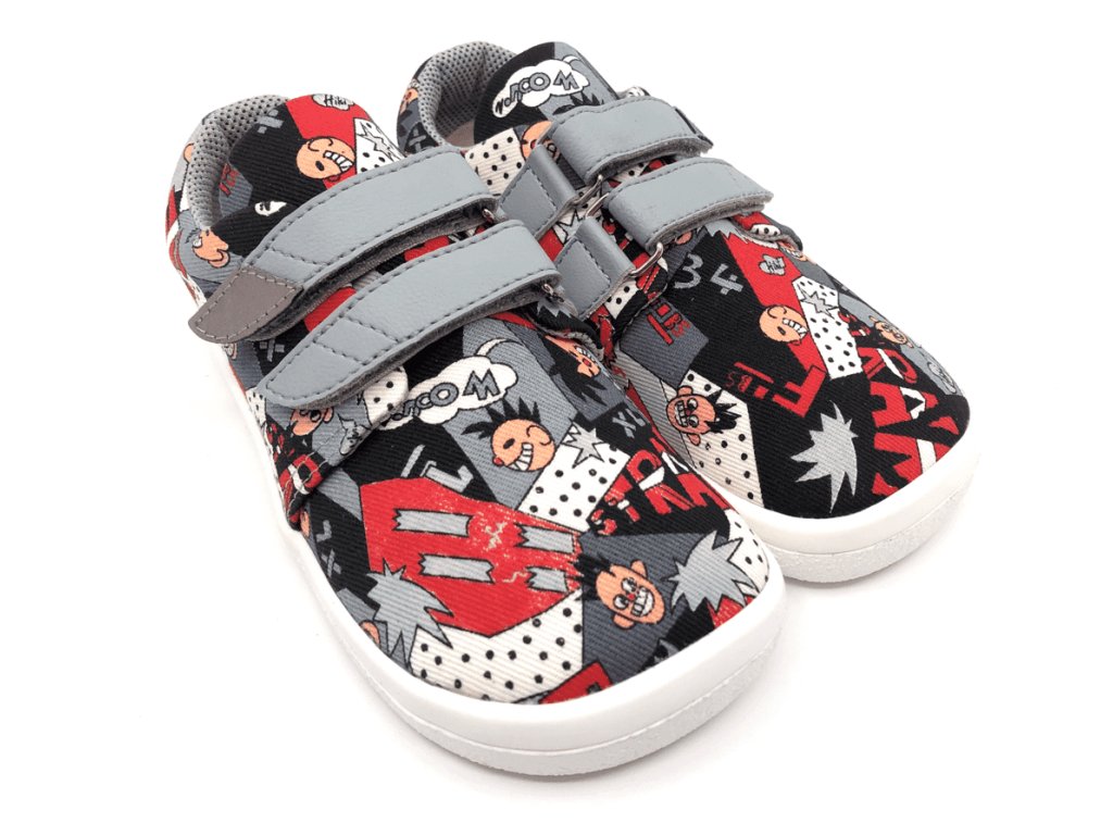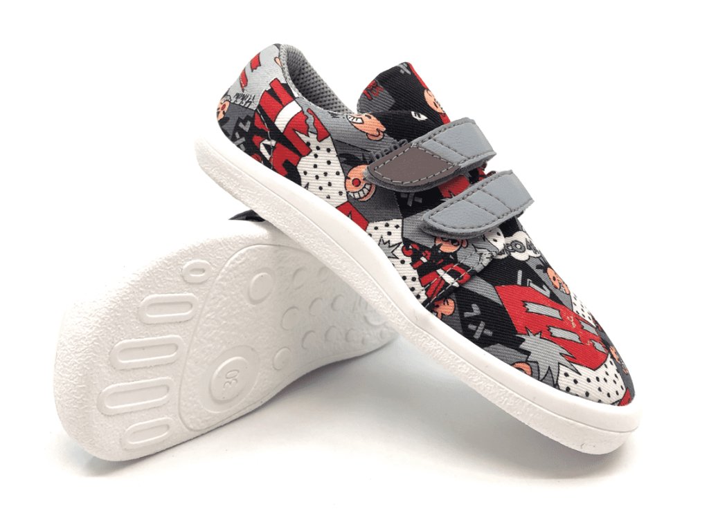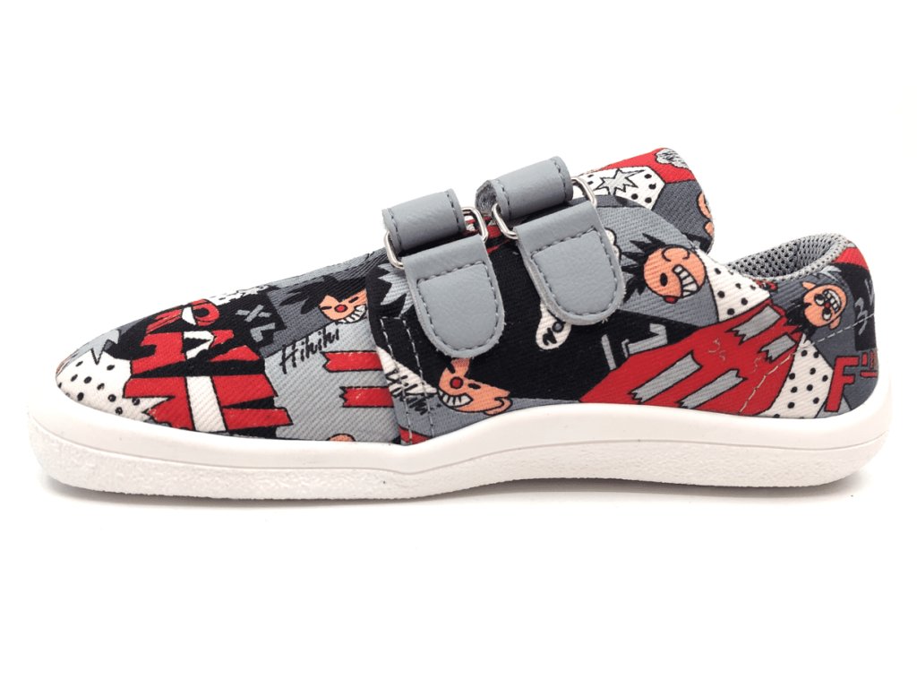 Textilné barefoot tenisky Beda Comics sú v neutrálnej unisex kombinácii šedej a červenej. Topánky majú pohodlný širší strih rešpektujúci tvar nohy - veľmi priestrannú špičku, sú mäkké, ľahké a ohybné. Reflexný prvok na velcro pásku pre dobrú viditeľnosť a bezpečnosť vášho dieťaťa.