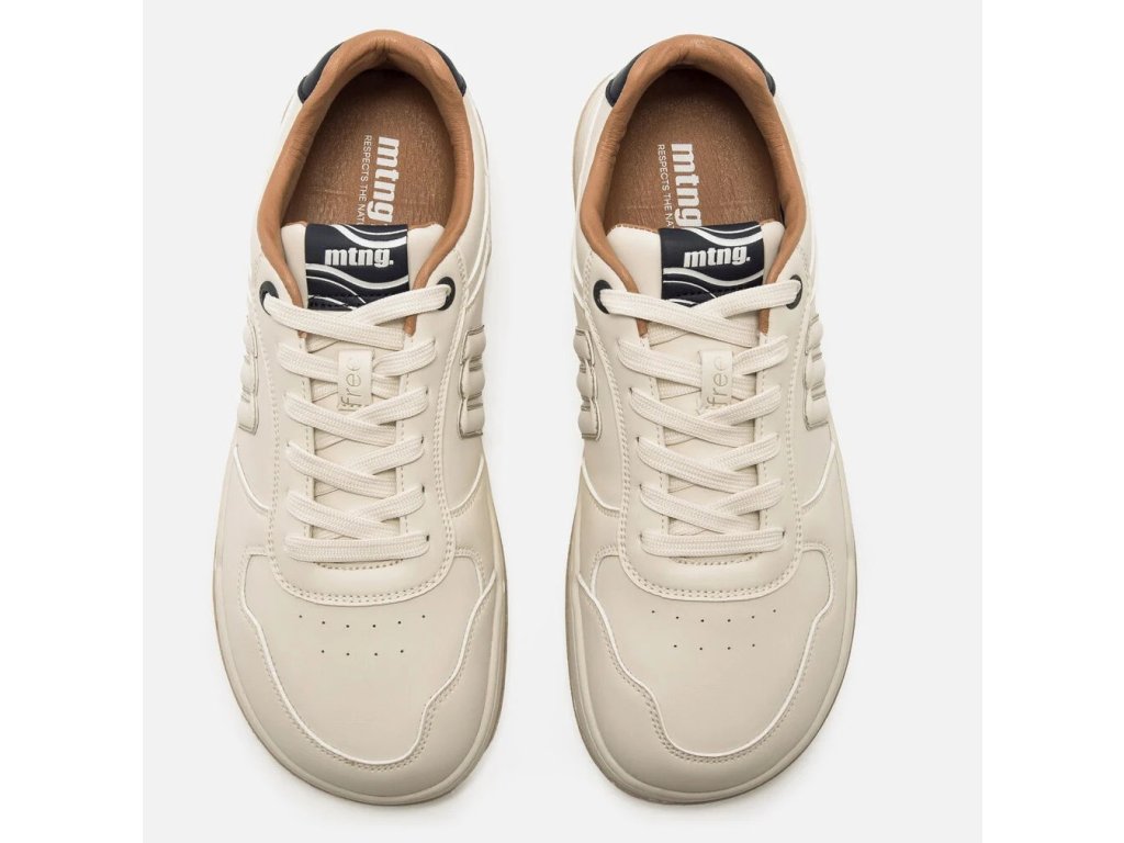 Barefoot tenisky MTNG Free Miami Losfo Ecru/Navy sú v elegantnej svetlej farbe s modrým detailom a hnedou kožou vo vnútri. Perfektne sa hodí k rifliam. Klasické šnúrky a ľahká flexibilná podrážka.