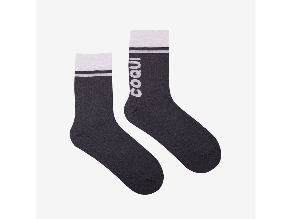 Bavlnené Ponožky od českého výrobcu Coqui v antracitovej farbe s nápisom. Vďaka vysokému podielu bavlny sú ponožky veľmi pohodlné, majú elastické lemy, ktoré neťahajú a plochý šef v oblasti prstov. Ponožky zostávajú tvarovo stabilné.