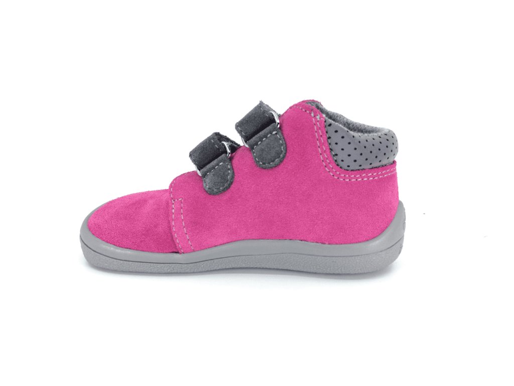 Celoročné dievčenské kožené barefoot topánky Beda Rebecca v sýto ružovej farbe. Nôžky v nich budú ako v papučkách - pohodlný širší strih rešpektujúci tvar nohy - veľmi priestranná špička, mäkučké, ľahučké, ohybné. Reflexný prvok na velcro pásku a taktiež okolo achilovky pre dobrú viditeľnosť a bezpečnosť vášho dieťaťa. Tento variant BF0001/W/M/2 má užší strih v oblasti päty a členku, je tak vhodný aj pre deti s užšou a normálne širokou pätou/členkom (verziu, ktorá je vzadu užšia označuje 2 na poslednom mieste kodu).