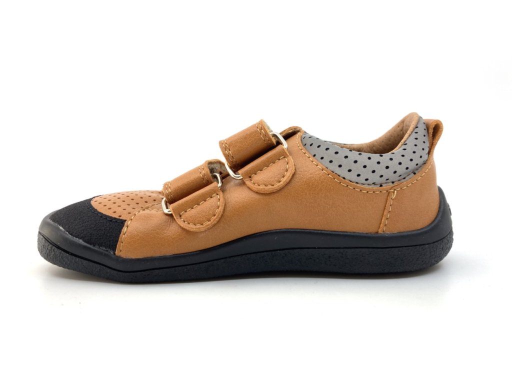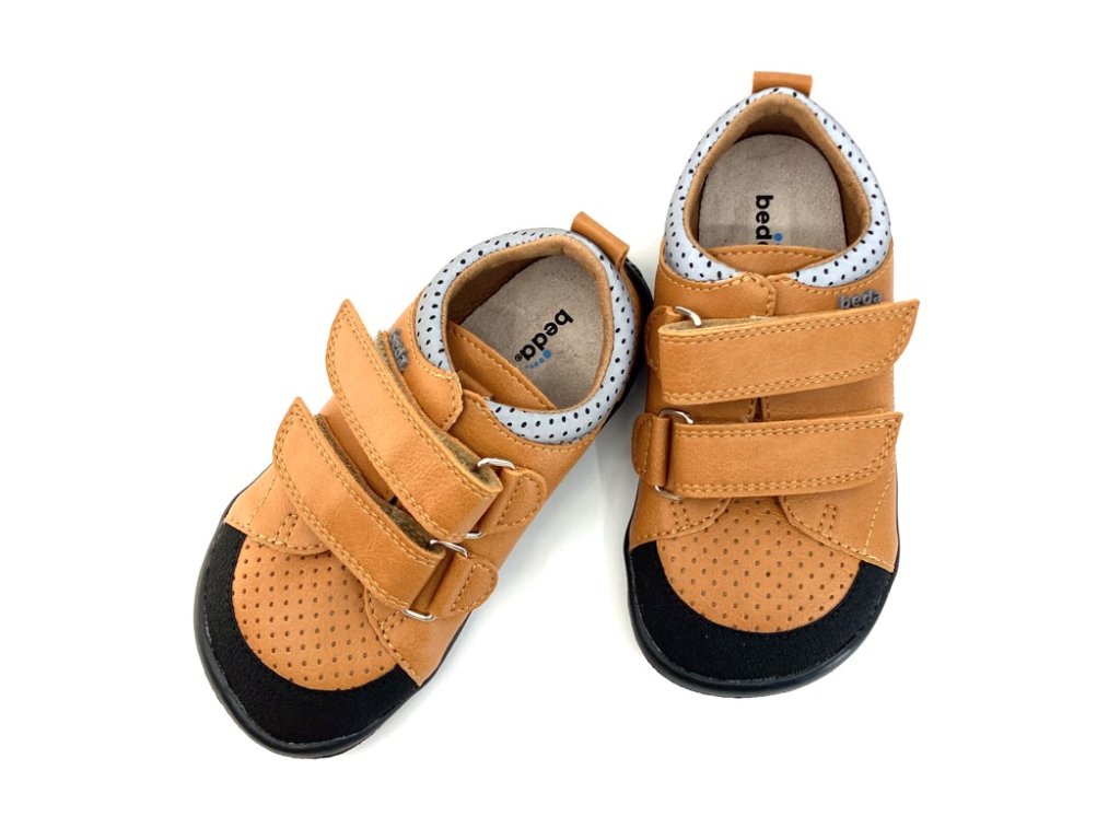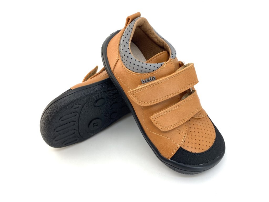 Nízke detské celoročné topánky Beda BFN 170030/W/NL/O/PF Camel sú vegánske, bez použitia prírodnej kože (značenie NL - no leather).