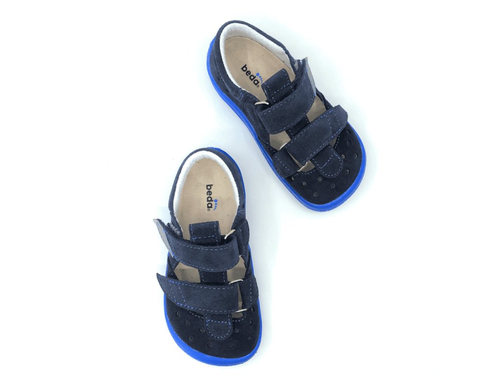 Detské barefoot sandále Beda Daniel v tmavo modrej farbe. Sú naozaj pohodlné - majú široký strih rešpektujúci tvar nohy, sú mäkké, ľahké a ohybné. Špička je prekrytá a chráni tak prstíky vašej ratolesti, zároveň má dostatok otvorov a dobre ventiluje.