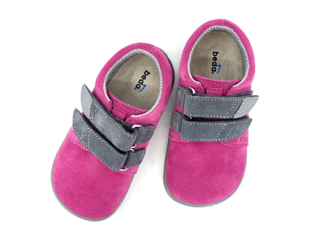 Celoročné kožené 100% barefoot topánočky Beda Rebecca v obľúbenej šedo-ružovej kombinácii. Nôžky v nich budú ako v papučkách - pohodlný širší strih rešpektujúci tvar nohy - veľmi priestranná špička, mäkučké, ľahučké, ohybné. Reflexný prvok na velcro pásku pre dobrú viditeľnosť a bezpečnosť vášho dievčatka.