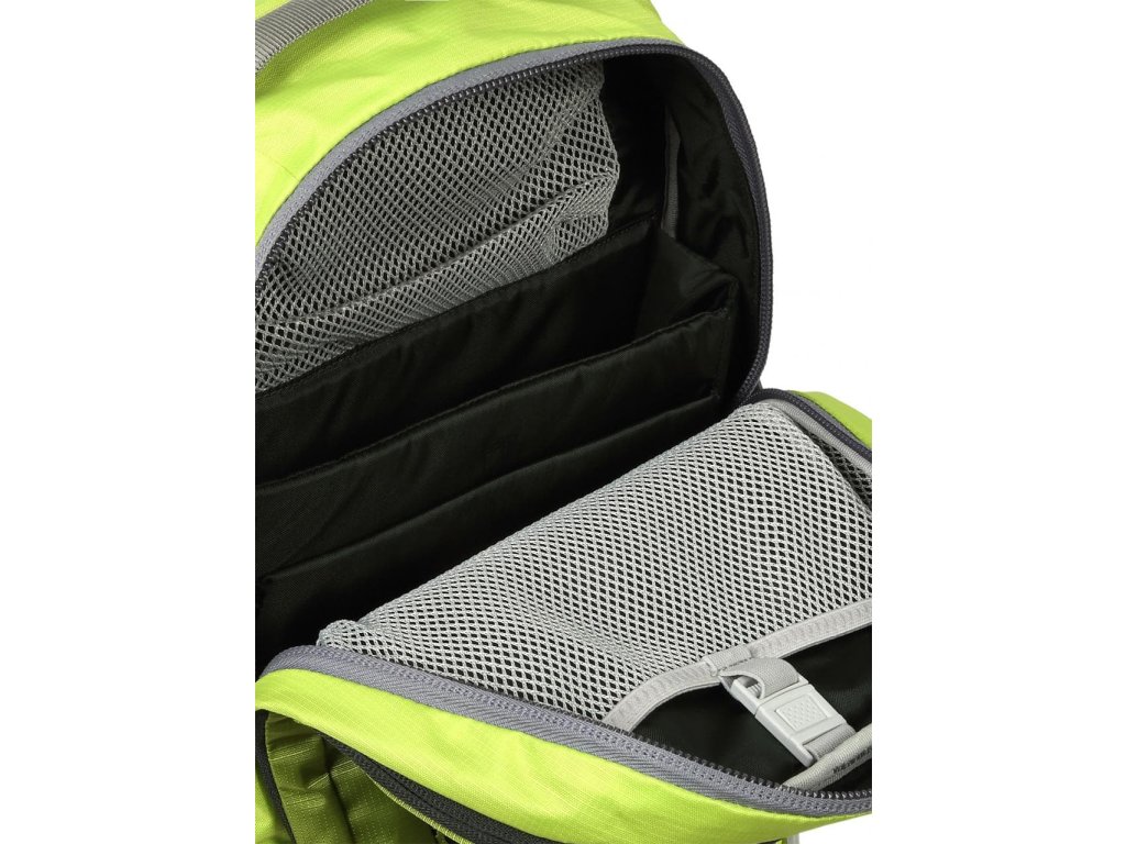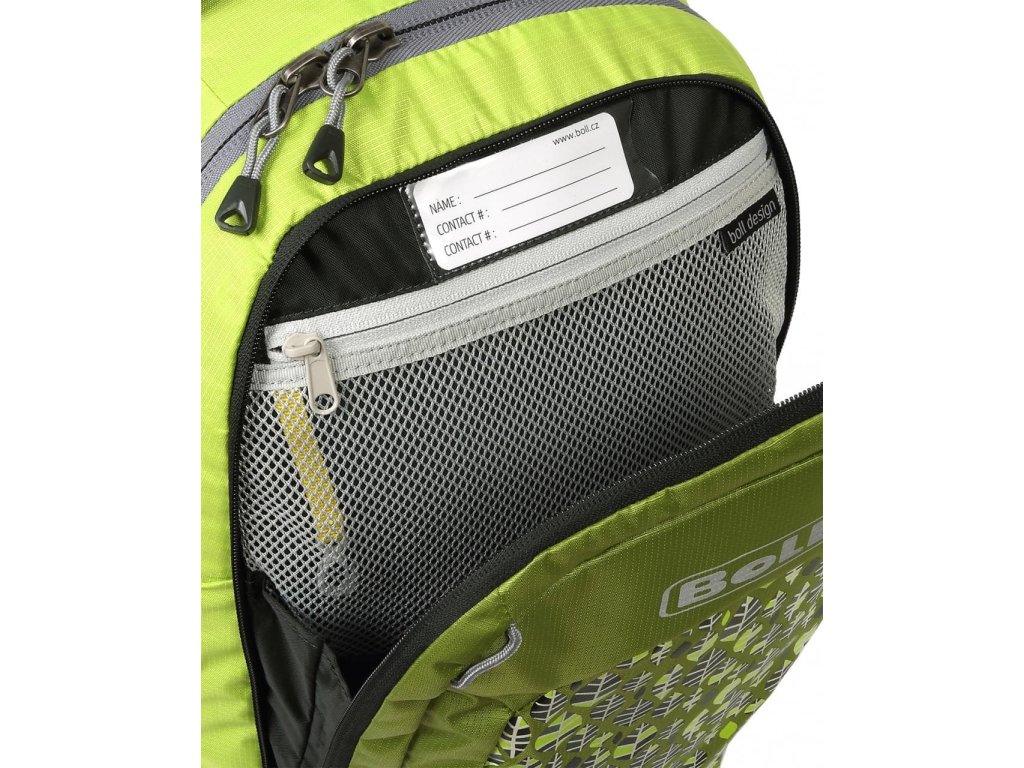 Batoh sa skladá z 2 komôr. Hlavná komora je priestranná, má 2 polstrované vrecká na zošity a 2 menšie sieťované vrecká na drobnosti (napríklad na kľúče, či peňaženku). Vrecká na knižky a zošity sú v zadnej časti tak, aby ťažké veci boli čo najbližšie chrbtu a váha sa tak netlačila zlým smerom. Predná komora je menšia, má 1 sieťované vrecko, vyberateľnú menovku a pútko na kľúče. Po stranách sú 2 vysoké sieťované vrecká na fľašu , okolo ešte sťahovací pásik, takže fľaša z batohu len tak nevypadne. Spolu s kapacitou 24 l batoh teda ponúka dobre zorganizovaný priestor pre všetko, čo dieťa počas školského dňa potrebuje.