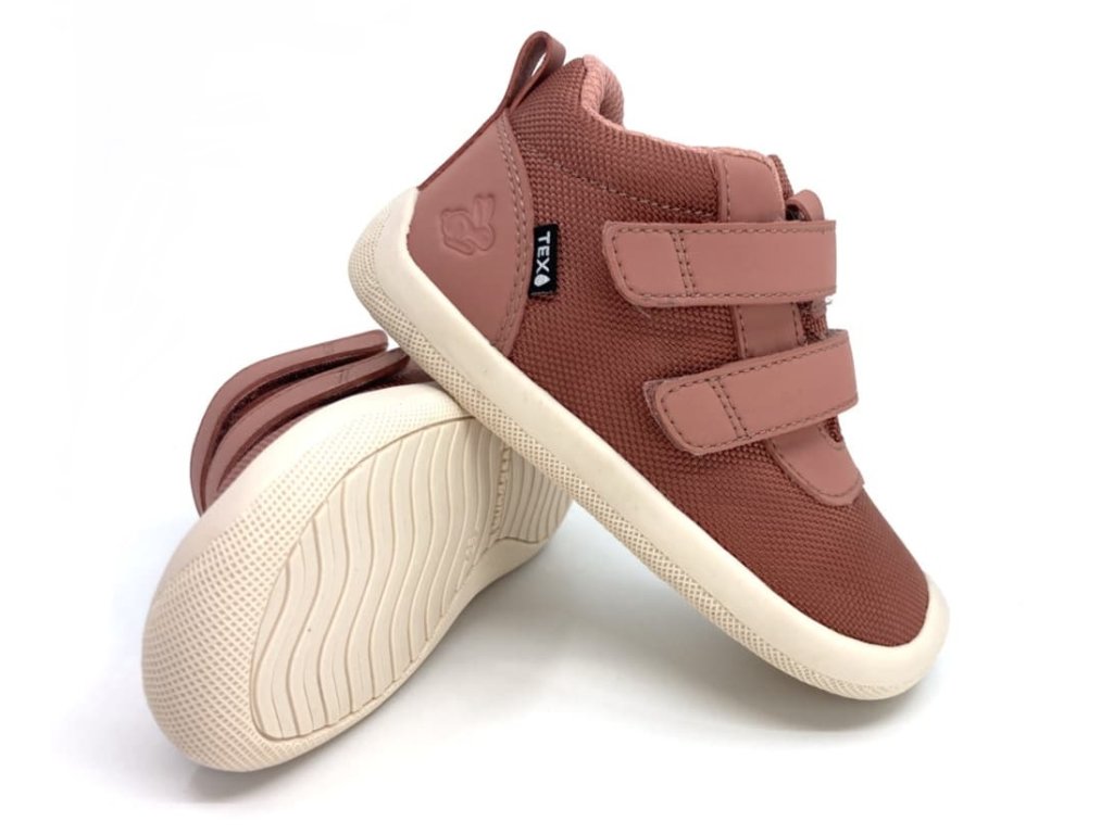 Celoročné dievčenské barefoot topánky Bundgaard Moon Tex Blush v ružovej farbe. Vyrobené z kombinácie syntetiky a textilných materiálov - priedušné a vďaka membráne nepremokavé. Ideálne topánky na jar aj na jeseň. Na špičke je ochrana proti okopaniu.