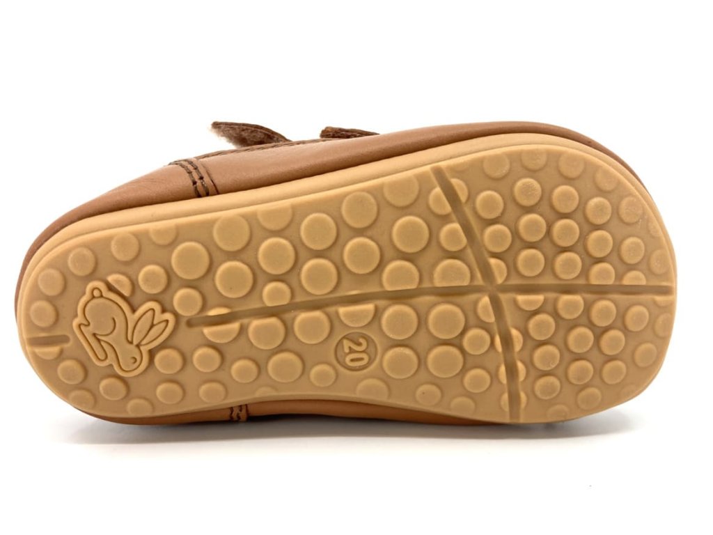 Kožené Barefoot topánky Bungdaard Prewalker vhodné na prvé krôčiky. Celoročné topánky v uni hnedej farbe Cognac sú veľmi mäkké a ohybné všetkými smermi. Priestranná špička rešpektujúca voľný pohyb prstov v topánke ako do šírky, tak aj do výšky. Sú teda vhodné pre dominantný palec aj vyšší priehlavok. Zosilnená vrstva v opätkovej aj prstovej časti chráni proti okopu. Podrážka je veľmi tenká, s jemným zvieratkovým vzorom. Podšívka je tiež z príjemnej kože , vyberateľnou koženou stielkou s miernym pätným lôžkom.